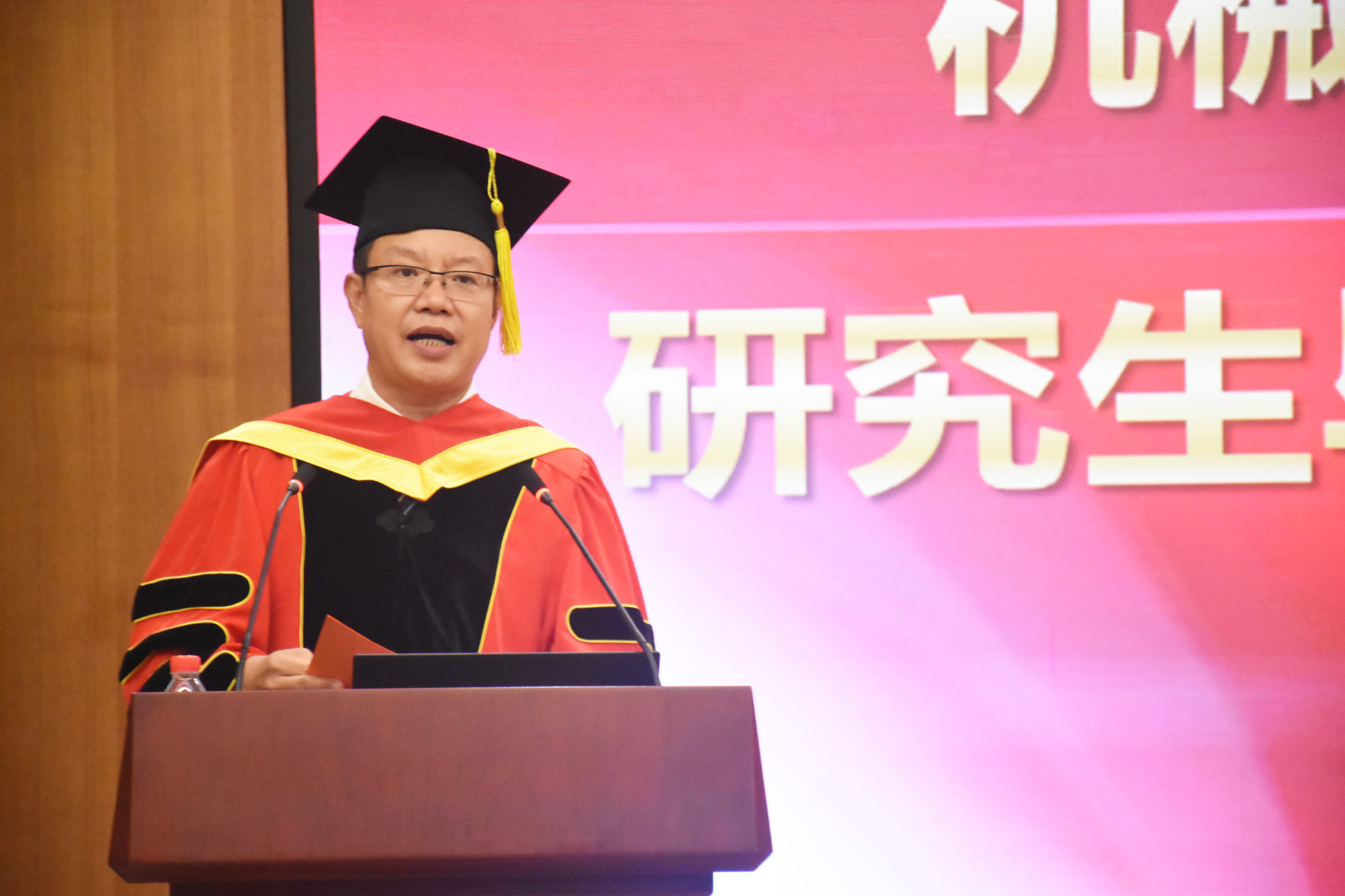 最后,王德成主席作了重要講話(huà),他祝賀所有畢業(yè)生順利畢業(yè)并取得學(xué)位,對導師、各研究生培養單位以及相關(guān)職能部門(mén)的辛勤工作表示感謝,對家長(cháng)們的默默付出致以敬意,并對畢業(yè)生們在今后的學(xué)習工作中提出了三點(diǎn)希望:一是希望同學(xué)們牢固樹(shù)立正確的人生觀(guān)、價(jià)值觀(guān),恪守做人之道,牢記習近平總書(shū)記“愛(ài)國、勵志、求真、力行”的囑托,進(jìn)一步培養自己的高尚情操,提升自己的人格品味;二是希望同學(xué)們不斷學(xué)習、持續提升和全面發(fā)展,永葆進(jìn)取之心,在新時(shí)代有新?lián)敽托伦鳛椋?ldquo;幸福都是奮斗出來(lái)的,奮斗本身也是一種幸福”,“每個(gè)青年都應該珍惜這個(gè)偉大時(shí)代,做新時(shí)代的奮斗者”;三是希望同學(xué)們志存高遠,“自信人生二百年,會(huì )當水擊三千里”,不斷發(fā)揚創(chuàng )新精神和“工匠精神”,腳踏實(shí)地,愛(ài)黨愛(ài)國、愛(ài)院愛(ài)家,奏響更加精彩的人生篇章。