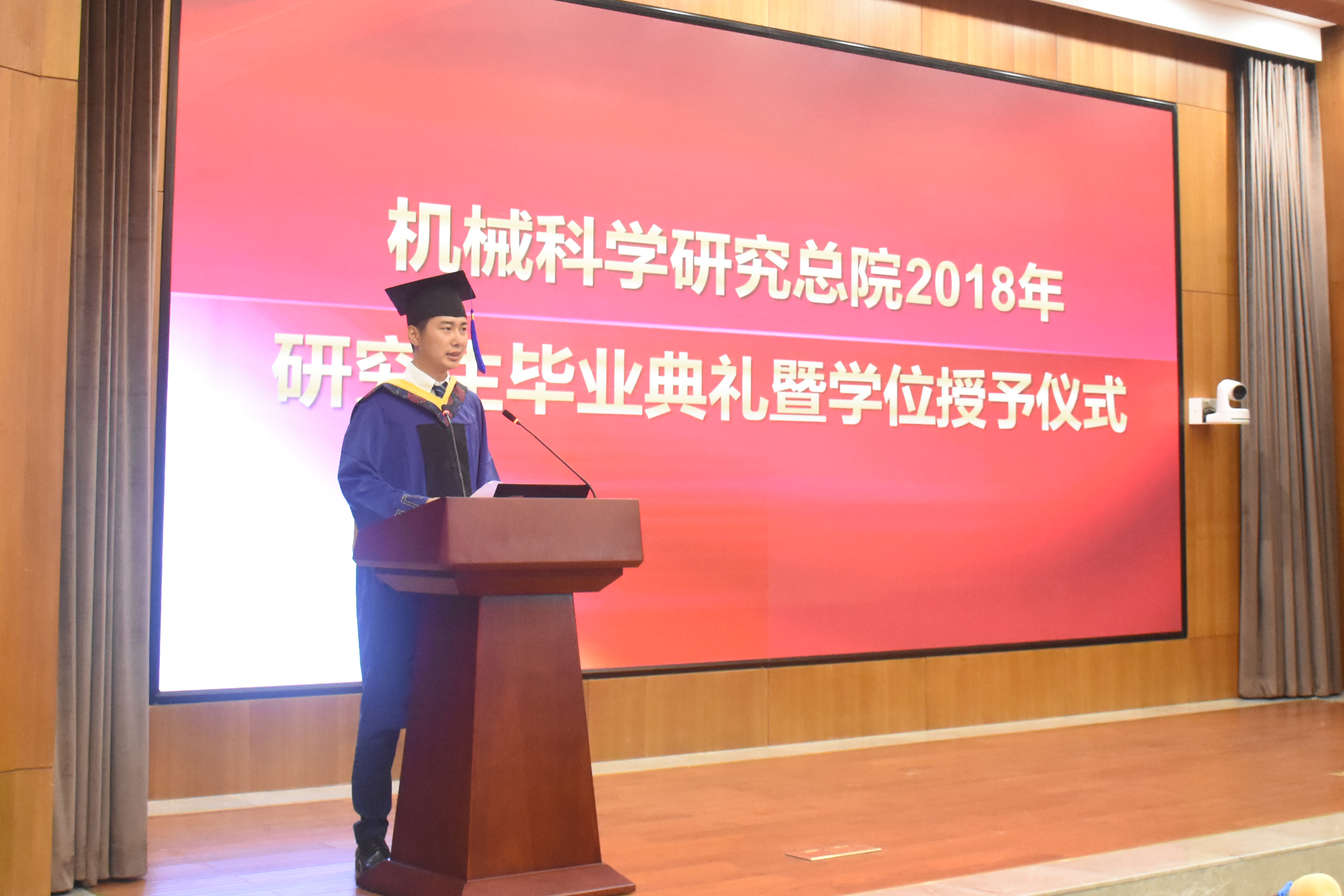 7月19日,機械總院集團2018屆研究生畢業(yè)典禮暨學(xué)位授予儀式在總部舉行。機械總院集團學(xué)位評定委員會(huì )主席王德成研究員、學(xué)位評定委員會(huì )副主席單忠德研究員以及其他學(xué)位評定委員會(huì )委員、總部各職能部門(mén)負責人等出席典禮,來(lái)自集團各單位的60多名研究生代表、導師代表、各培養單位的研究生管理人員以及部分畢業(yè)生親屬參加了典禮。典禮由單忠德副主席主持。